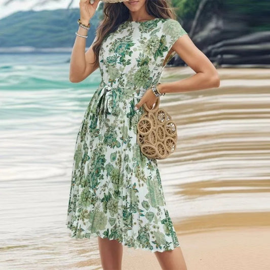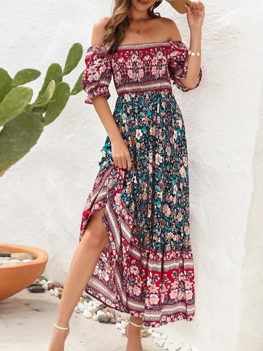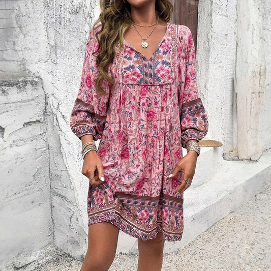 Women Bohemian Floral Tunic Dress with V-Neckline | Mea