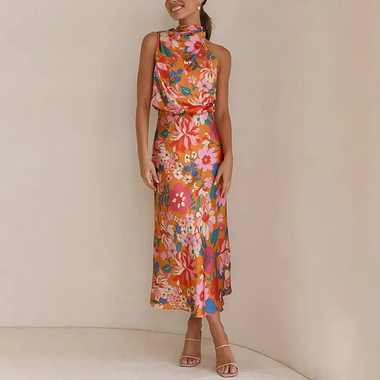 Women Floral Print Halter Neck Dress with Ruched Detail | Tina