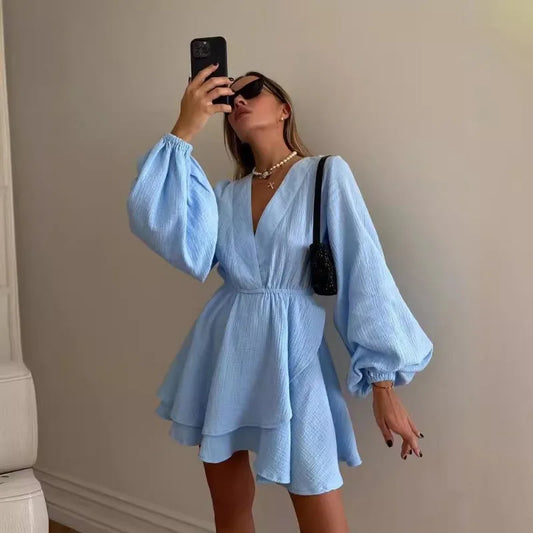 Women Flowy Balloon Sleeve Mini Dress | Milagros