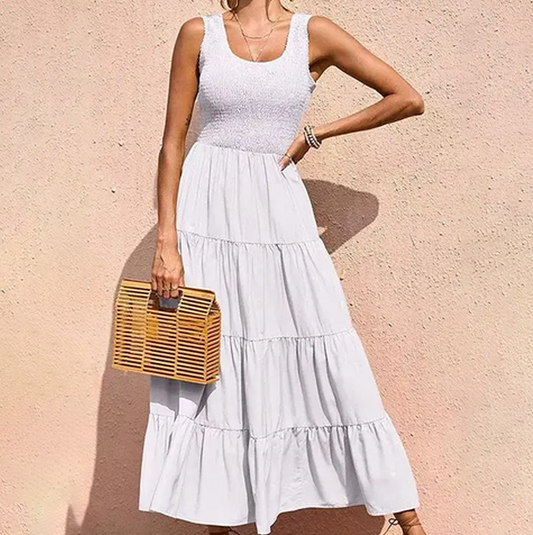 Women Smocked Bodice Tiered Maxi Dress | Hannah