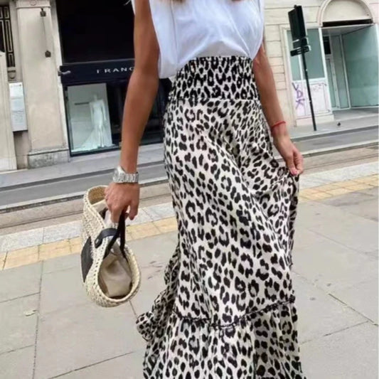 Women Leopard Print Tiered Maxi Skirt | Beatriz