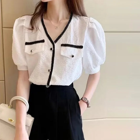 Women Flared Embroidered Button-Up Shirt | Manuela