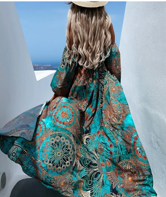 Women Bohemian Off-Shoulder Maxi Dress | Janica