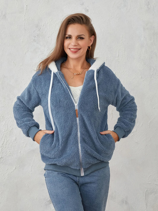 Women Cozy Sherpa Zip-Up Hoodie | Gianna