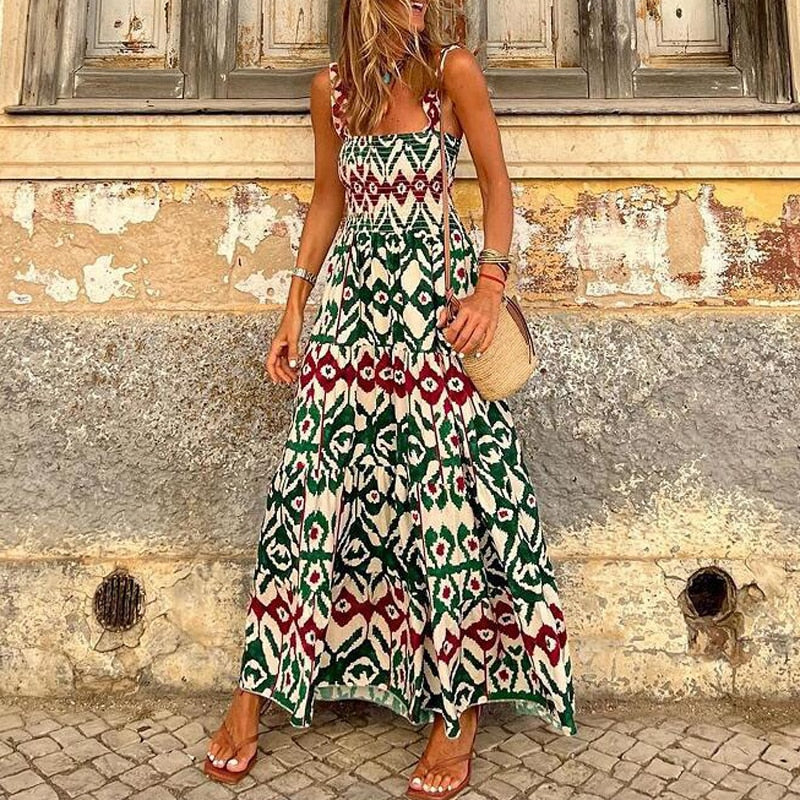 The Floral Print Halter Maxi Dress | Lesley is a vibrant and stylish addition to your wardrobe. This maxi dress features a halter neckline and a smocked waist for a comfortable and figure-enhancing fit. The lightweight fabric and bold floral print make it ideal for summer outings, vacations, or garden parties. Pair it with flat sandals and a straw bag for a casual day look or elevate it with heels for an evening event.