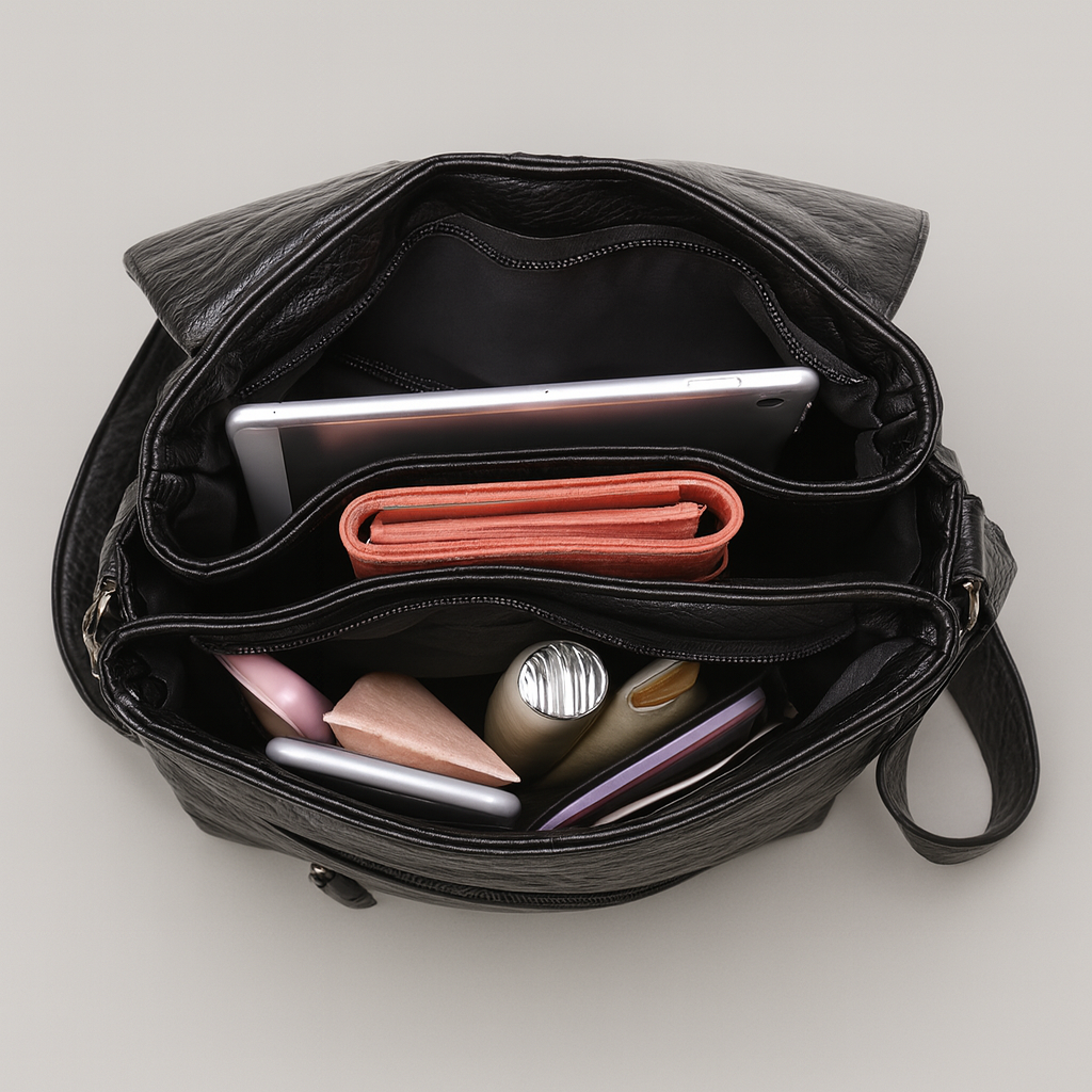 - Compact & Functional: Spacious enough for daily essentials while maintaining a sleek look.