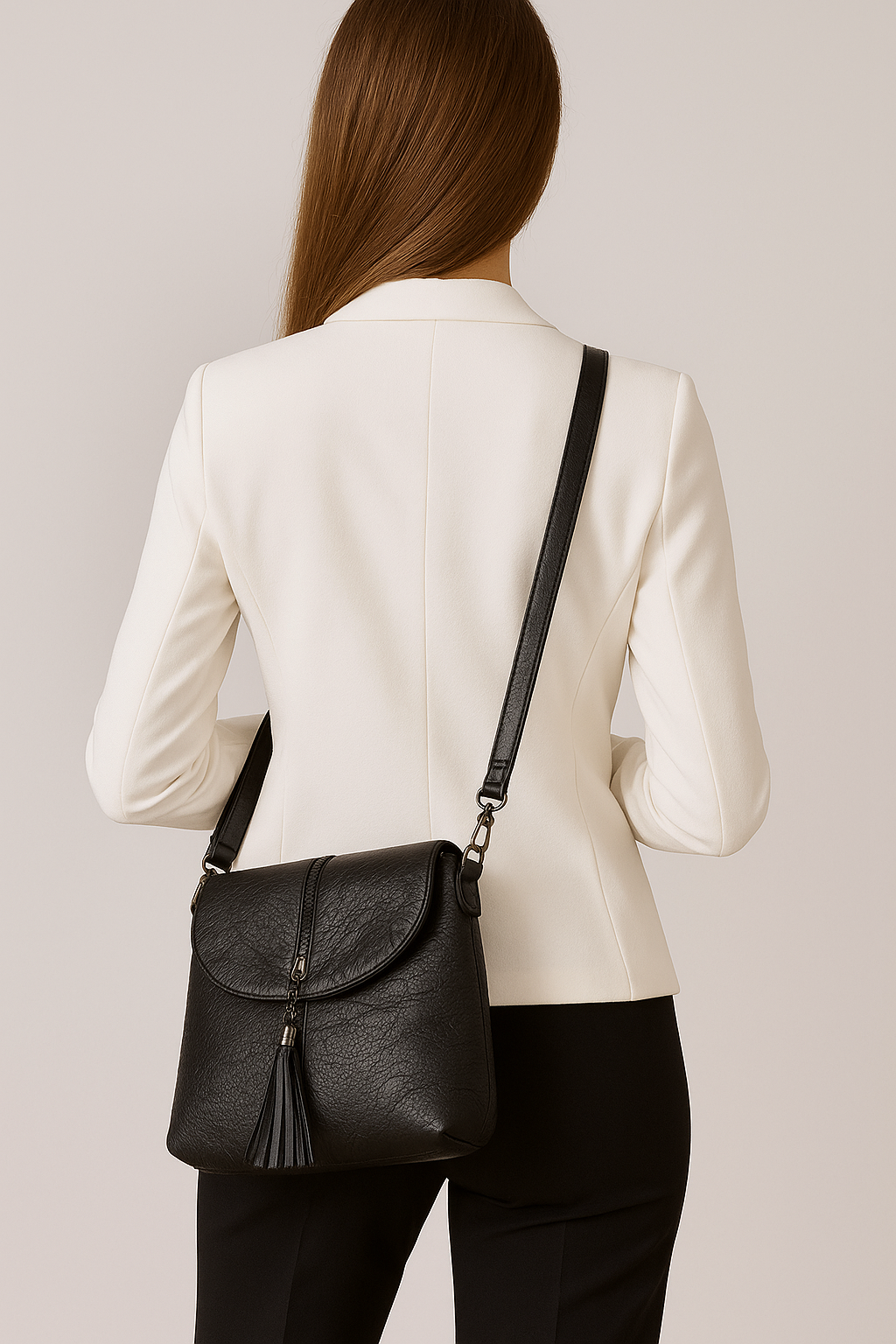 A stylish crossbody bag featuring a chic tassel design and a secure zip closure—ideal for both casual and formal outings.
