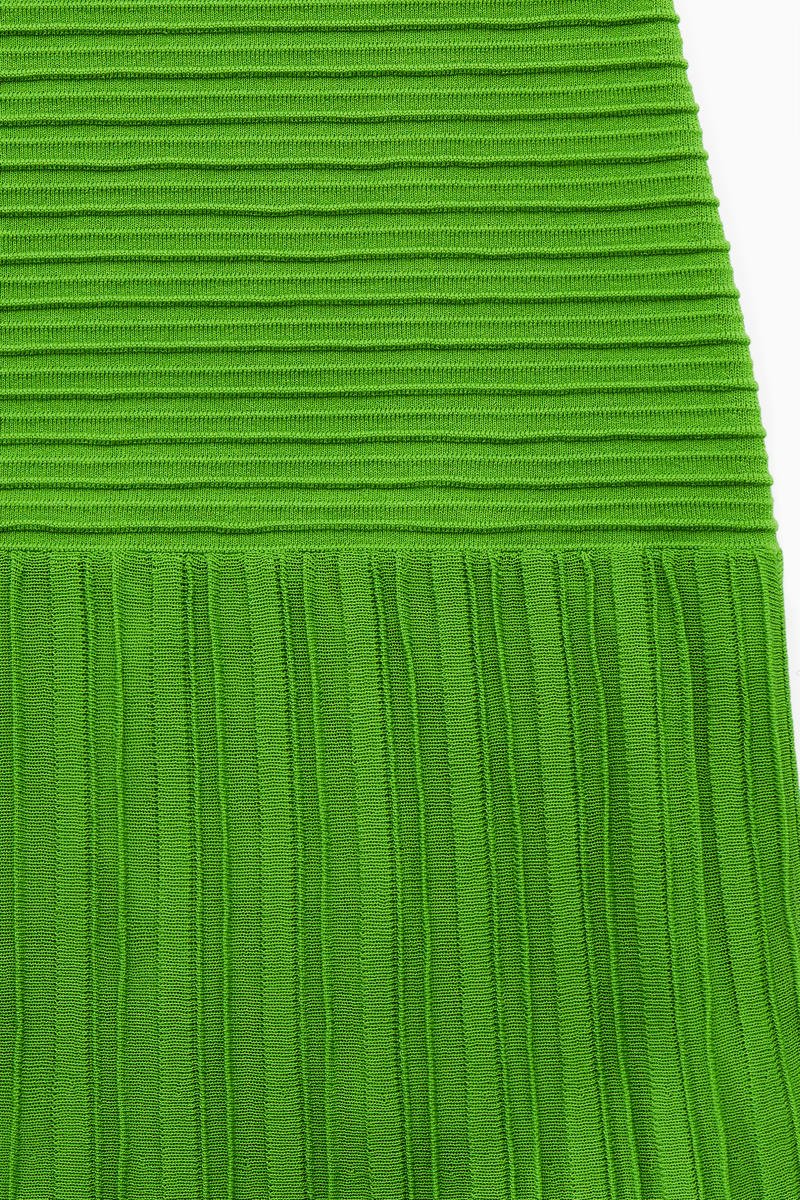 A vibrant green maxi dress designed to make an elegant statement with its structured pleats and modern silhouette.